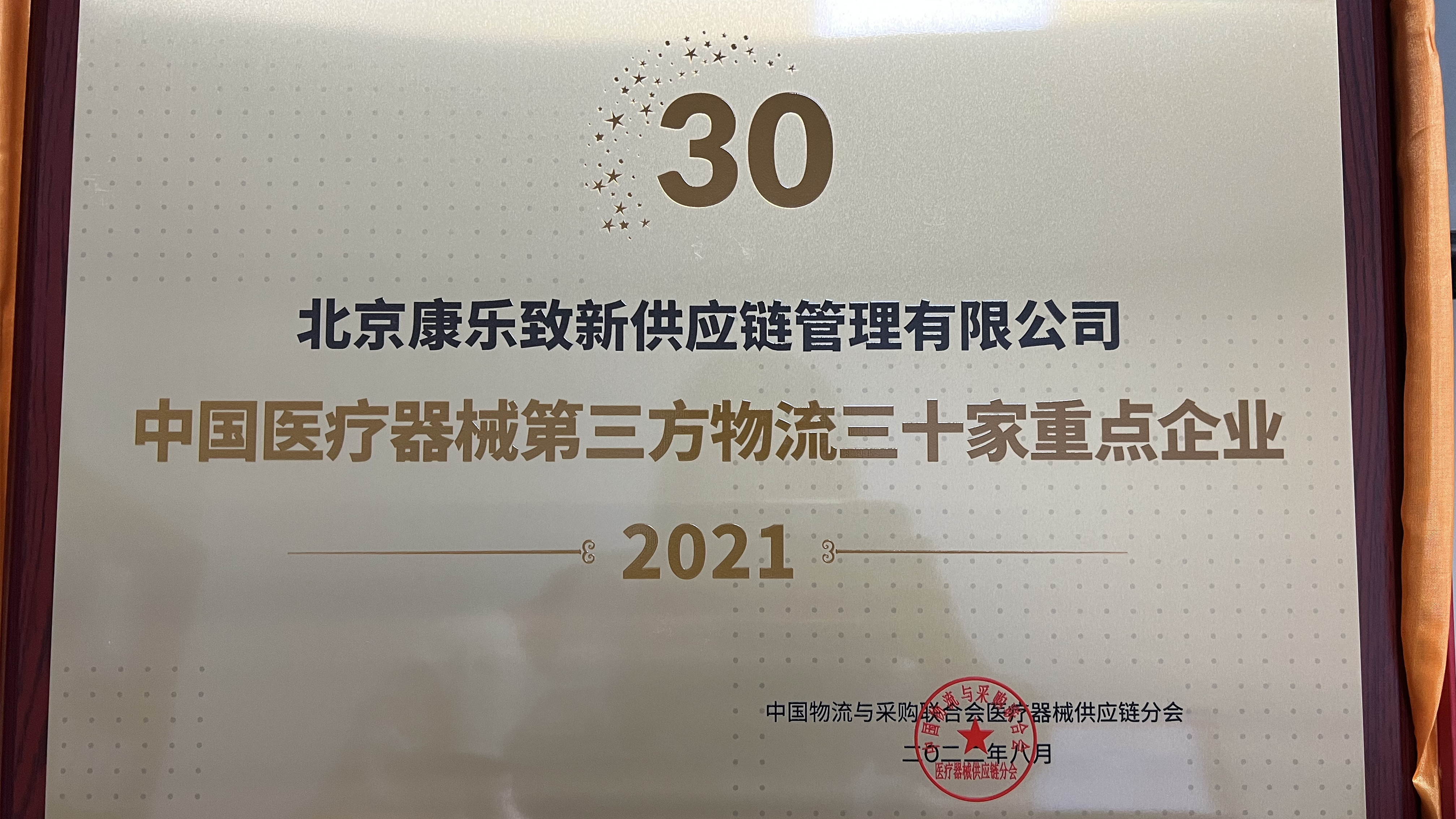 建發(fā)醫(yī)療北京康樂致新榮獲“2021年度中國醫(yī)療器械第三方物流三十家重點企業(yè)”榮譽稱號