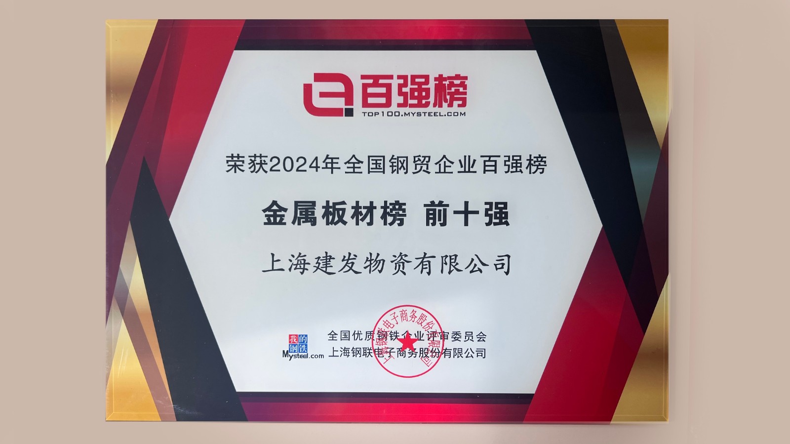 近日,在“2025中國(guó)大宗商品頒獎(jiǎng)慶典”上,建發(fā)股份(600153.SH)鋼鐵集團(tuán)獲2024年全國(guó)鋼貿(mào)企業(yè)百?gòu)?qiáng)榜“綜合榜第一位”,鋼鐵集團(tuán)旗下建發(fā)金屬、上海建發(fā)物資分獲“金屬板材榜第一位”及“金屬板材榜前十強(qiáng)”。