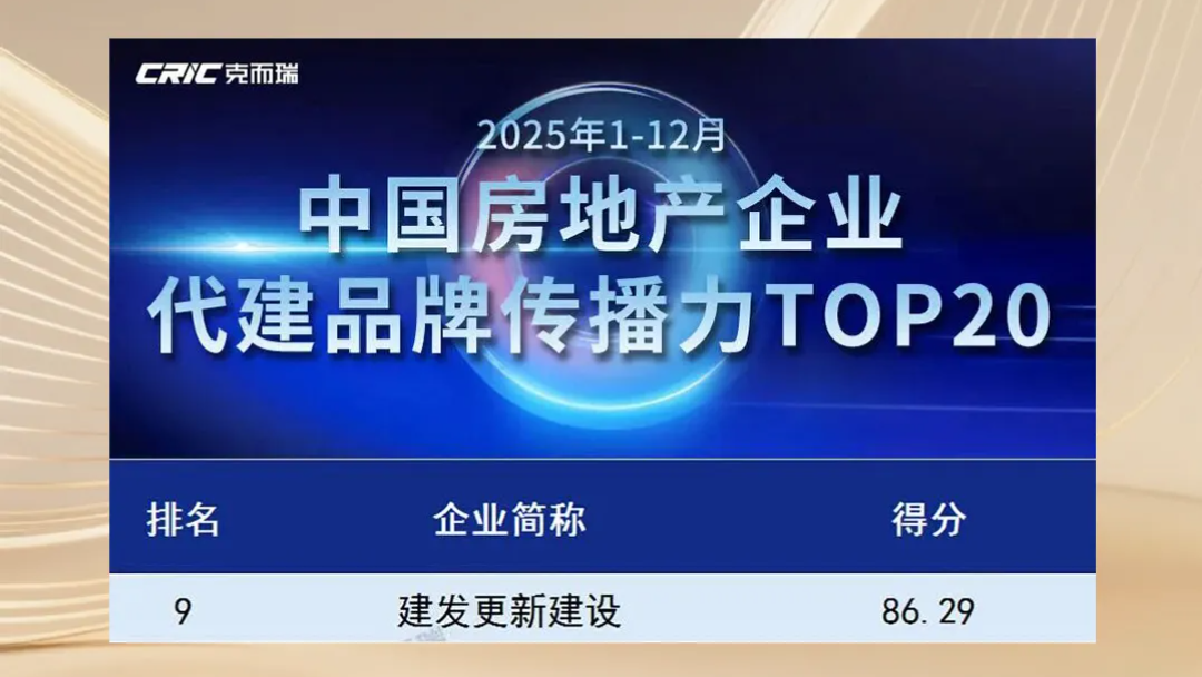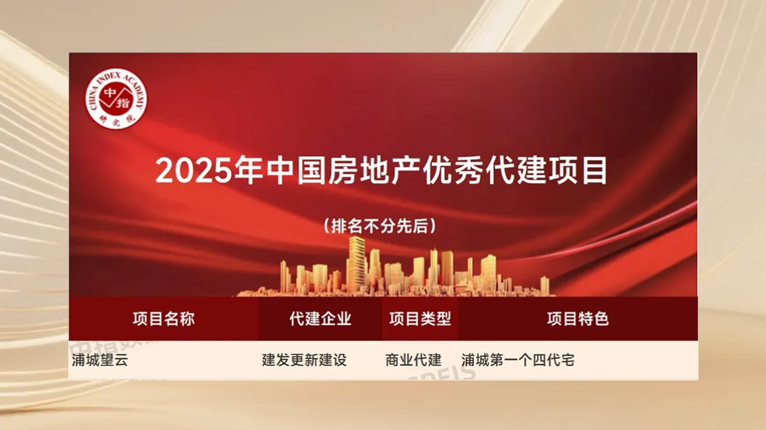 此外,建發更新建設獲中指院“交付規模TOP2”、“政府代建新簽規模TOP5”,克而瑞“品牌傳播力TOP9”,旗下浦城望云項目獲評行業優秀代建案例。