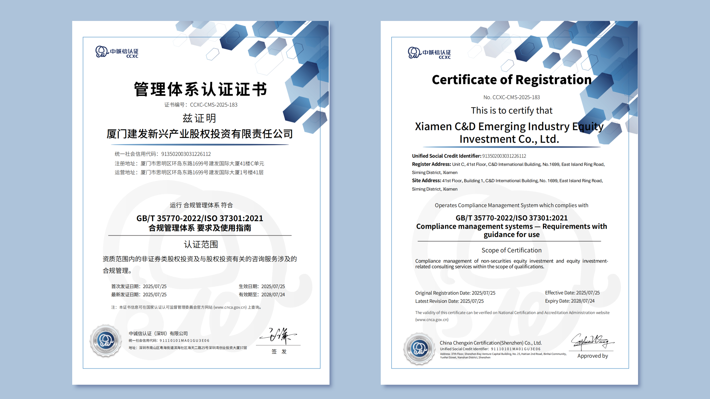 建發新興投資通過合規管理體系全領域認證